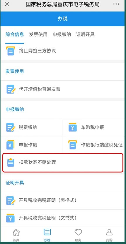 3.如果支付过程中因网络不畅等原因造成支付中断,可以通过“扣款状态不明处理”将支付作废后,重新支付。