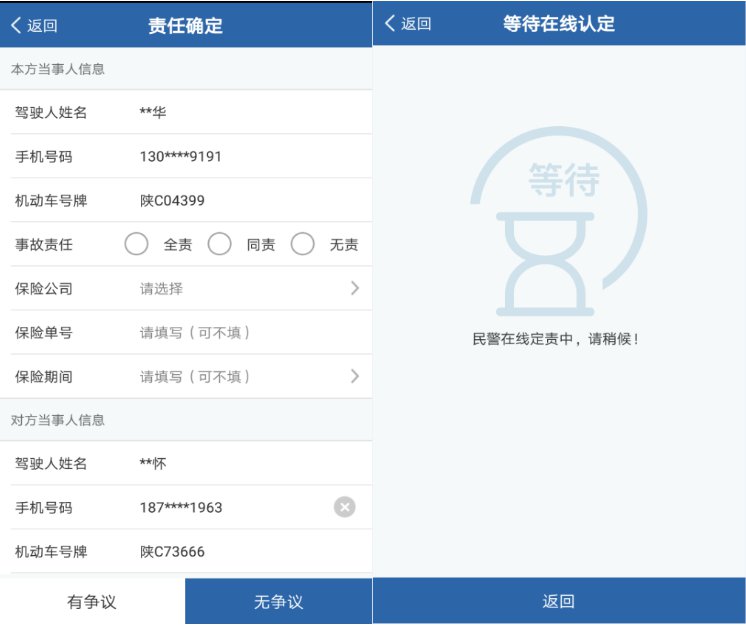 4、事故双方自行协商或申请在线认定,只需要事故一方当事人操作采集事故相关信息,另一方当事人配合验证确认。
