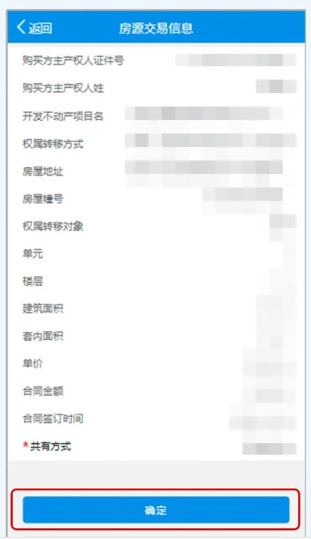 第五步:系统带出房屋交易信息后,点击确定后您别忘了录入房屋套次和家庭成员相关信息。