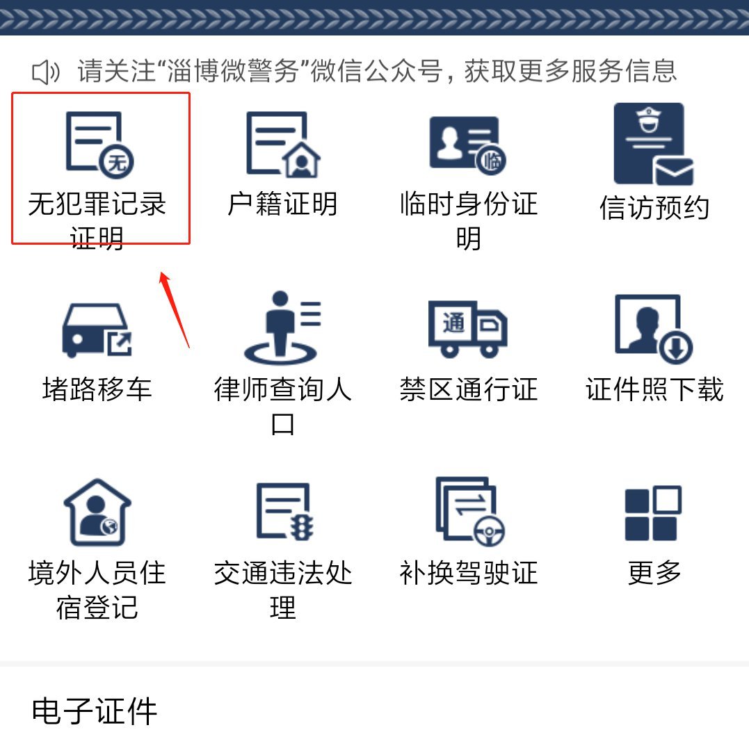第二步:点击首页第一栏的【无犯罪记录证明】;