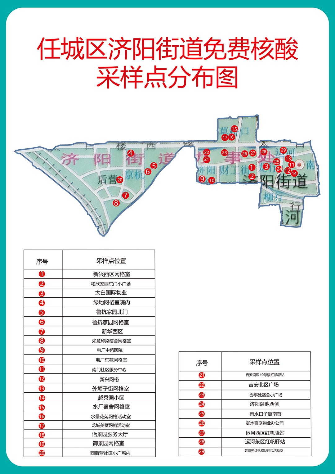 以下是全区免费核酸检测采样点导引,详细信息请点击查看。