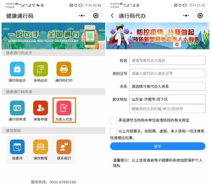 第六步:再使用“为家人代办”模块为孩子办理健康通行码此时填写学生信息
