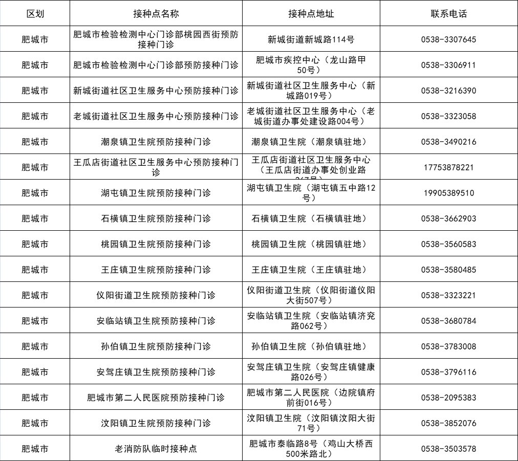 一、肥城市新冠疫苗接种点汇总