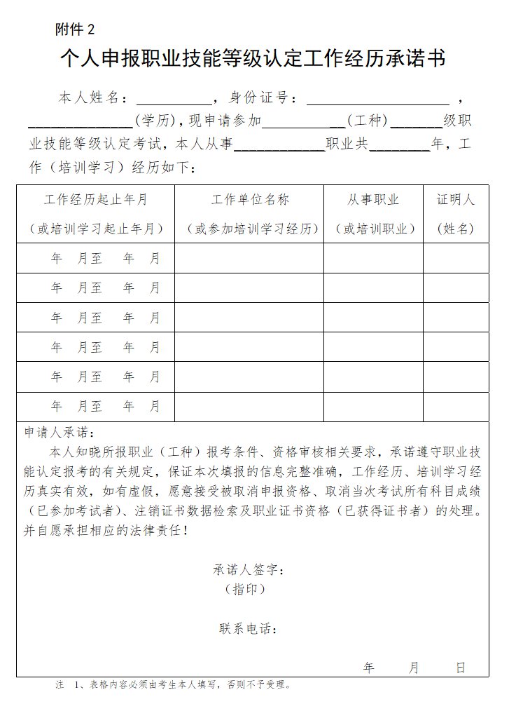 泰安《个人申报职业技能等级认定工作经历承诺书》下载入口:点击下载