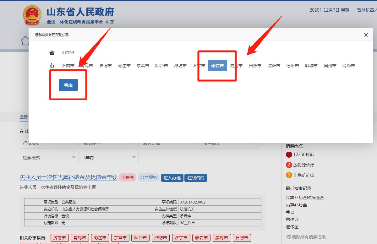 泰安丧葬补助金和抚恤金申领网上办理入口
