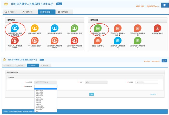 点击【档案管理】的【开具证明材料申请】→填写联系方式和选择要开具的证明材料类型→上传附件→提交申请信息→1-3个工作日后在【开具证明材料申请查询】菜单内查看业务办理进度和下载证明材料附件。