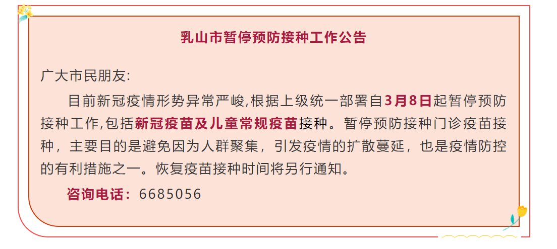 乳山市暂停预防接种工作公告