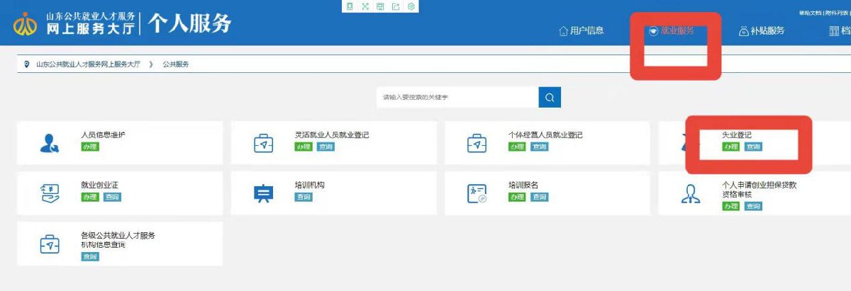 6. 登录后,进入个人服务界面,选择“就业服务”-“失业登记”。