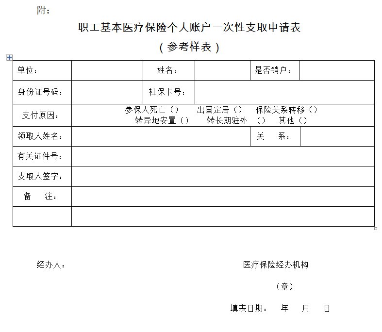 参保人符合以下情况之一的:出国定居、医疗保险关系转移至统筹范围外、死亡、异地安置退休人员或长期驻外工作人员,可以申请办理医保个人账户一次性支付。