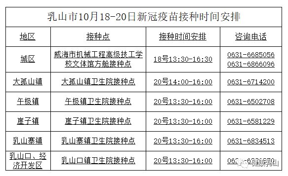 乳山市新冠疫苗具体时间表