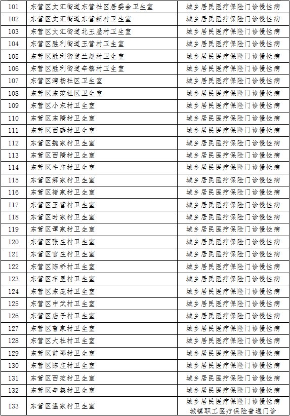 | 102 | 利津县陈庄中心生院东三村卫生室 | 城乡居民医疗保险门诊慢性病 |
