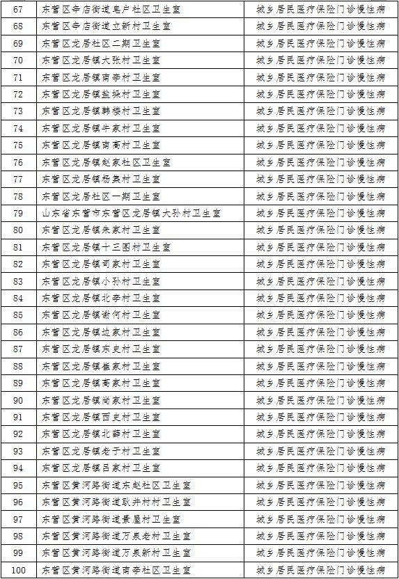 | 69 | 利津县盐窝中心卫生院鲍王庄村卫生室 | 城乡居民医疗保险门诊慢性病 |