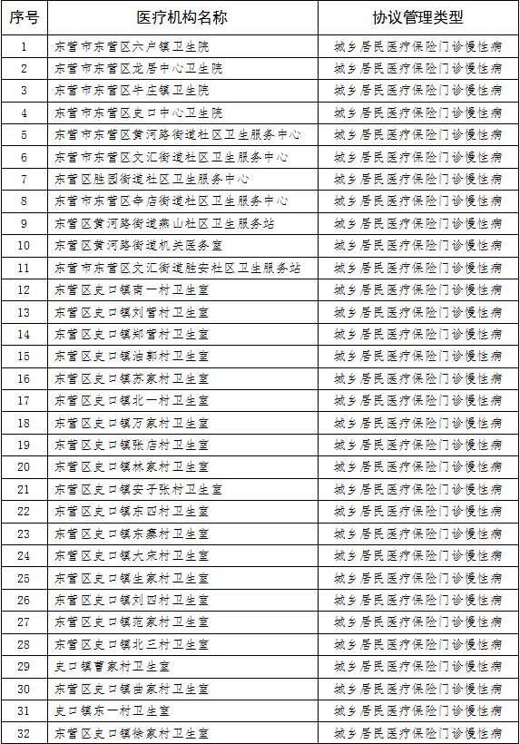 东营市城乡居民门诊慢性病定点医疗机构汇总