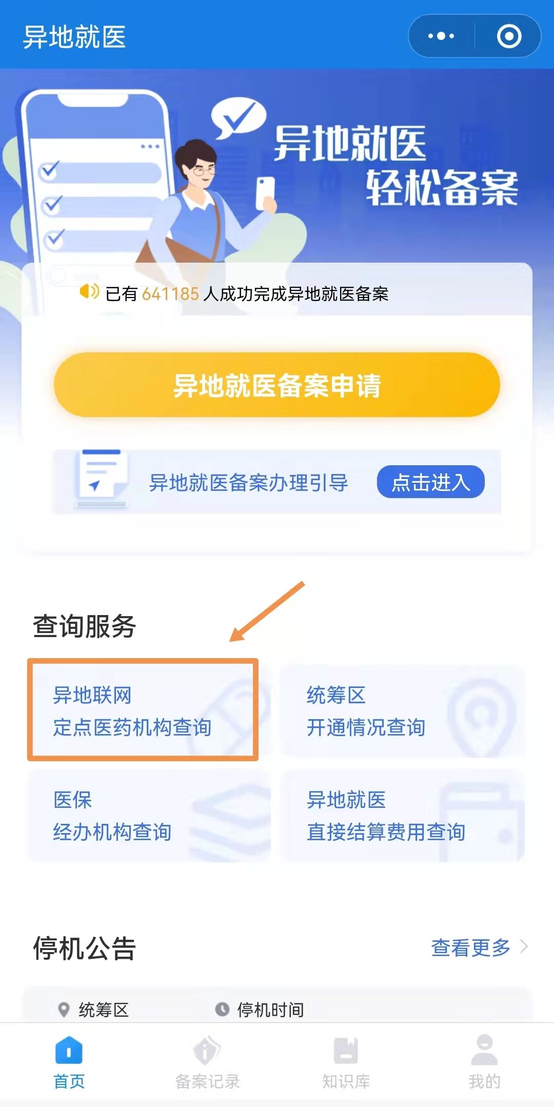 1、找到“国家异地就医备案”小程序首页【查询服务】栏目,可以直接查询全国范围内的医保定点机构。大家可以随时随地查询异地医保定点机构,有效提高异地就医就诊效率。