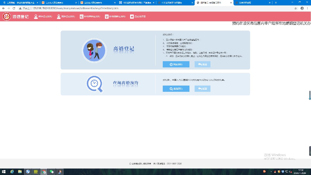 3、在离婚登记那里点击“我要预约”,进入离婚登记网上预约协议