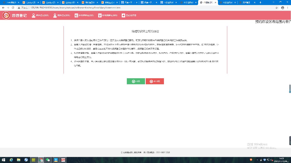 4、查看预约协议,确定无误后点击同意,进入信息填报。