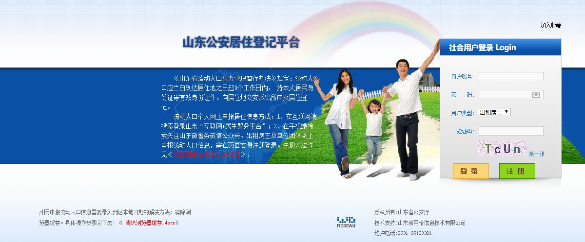 出租房主及单位团体需在互联网端搜索:山东公安居住登记平台,点击注册登录,即可进行流动人口申报。