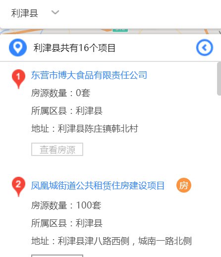 第二步:选择“房源信息”,即可查看东营各区县公租房房源信息情况