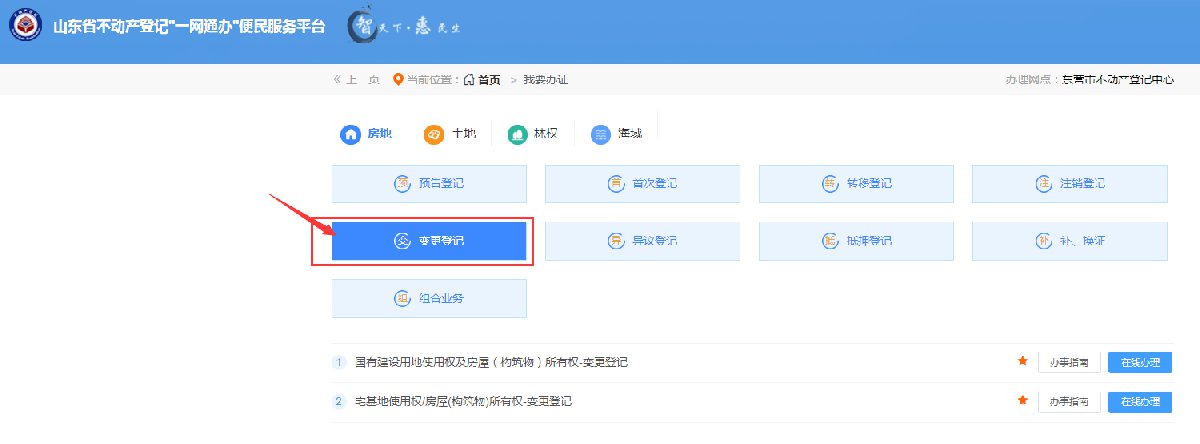 网上申请(山东省不动产登记"一网通办"便民服务平台) →登记部门审核 →登簿 →领取不动产权证书