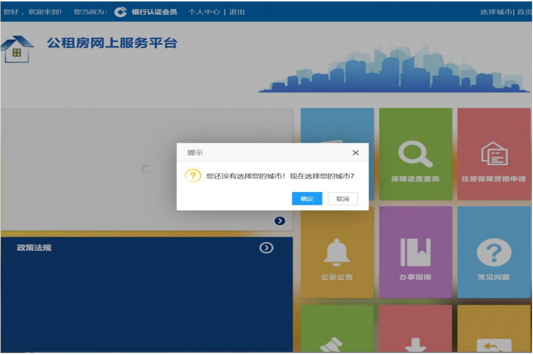 3、进入公租房网上服务平台首页,选择山东省东营市。
