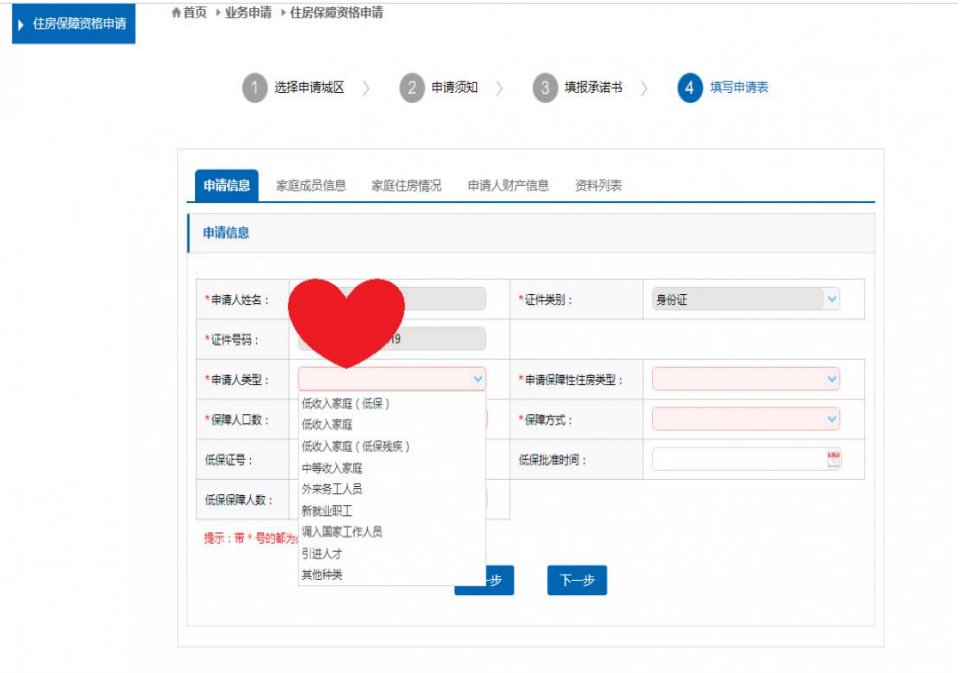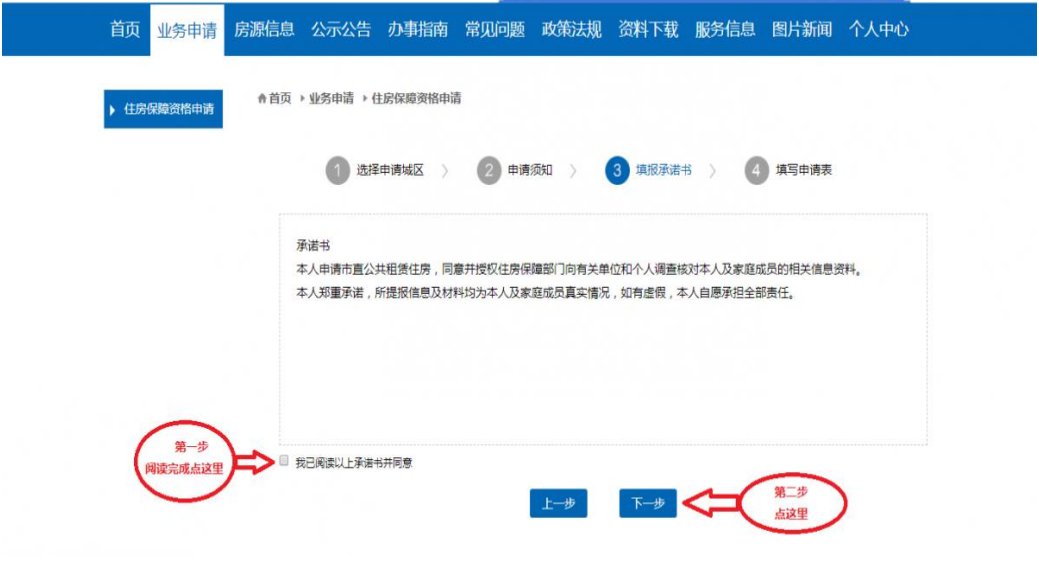 (1)完成实名认证后,点击住房保障资格申请选项卡,进入后点击业务申请,按照页面提示填写信息。