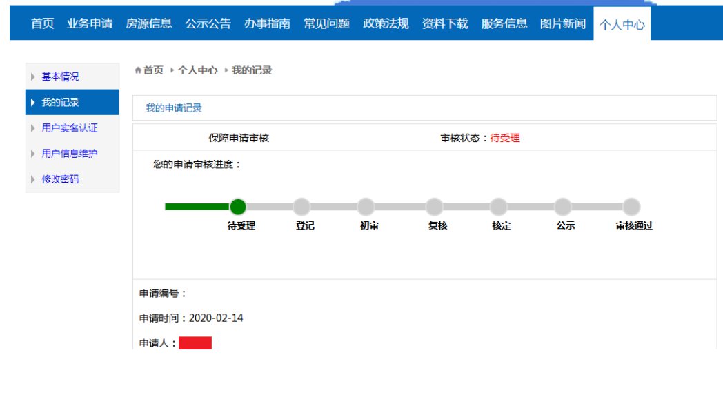 7、申请提交成功后,工作人员将根据申请人提报的信息进行资格审核,在疫情结束后尽快组织选房分房。审核不通过或需补齐补正相关资料的,将通过该平台进行反馈,申请人可随时登录平台进行进度查询。