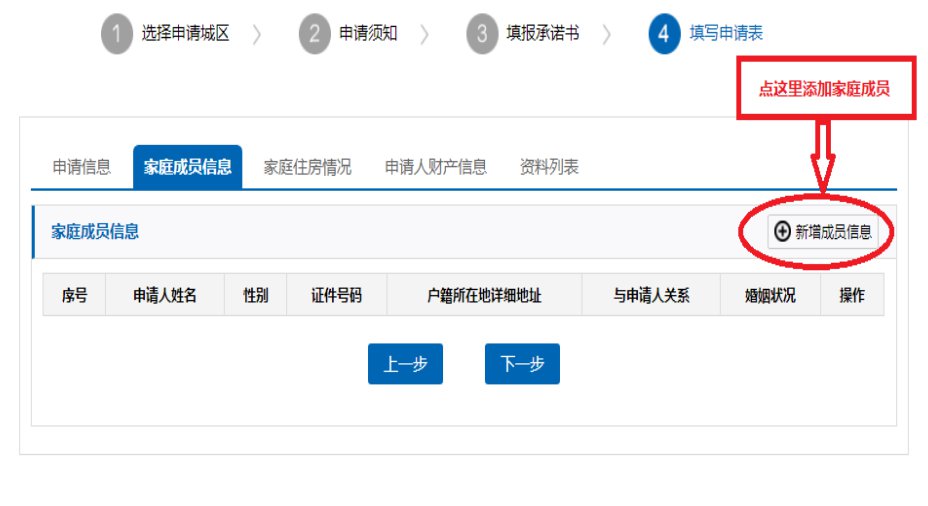 (6)添加家庭成员信息。家庭成员是指:申请人、申请人配偶以及同一户内未满28周岁的未婚子女,请如实填写,切勿多填、漏填。