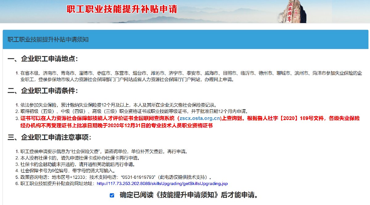 山东省人力资源和社会保障厅网站(服务大厅/系统快捷入口/职工职业技能提升补贴申请)