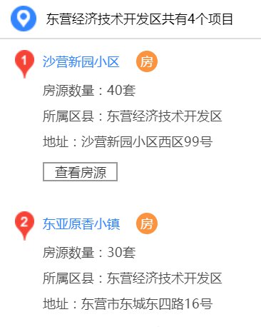 第二步:选择“房源信息”,即可查看东营各区县公租房房源信息情况