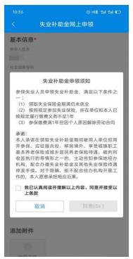 5.认真阅读失业补助金申领须知后,勾选“我已认真阅读并理解以上内容,同意并接受以上条款”前面的选择框,待读秒结束后点击同意按钮。