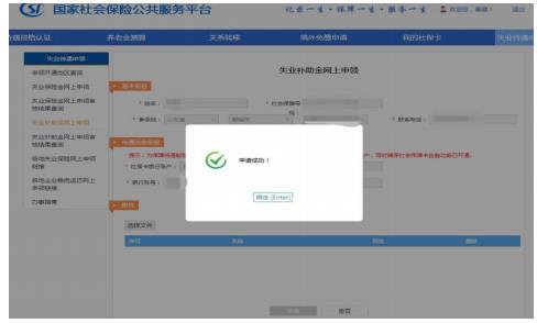 3.点击左侧“失业补助金网上申领”,进入失业补助金网上申领界面。