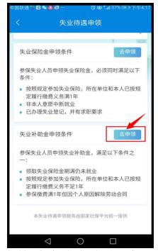 4.在“失业补助金申领条件”一栏点击“去申领”