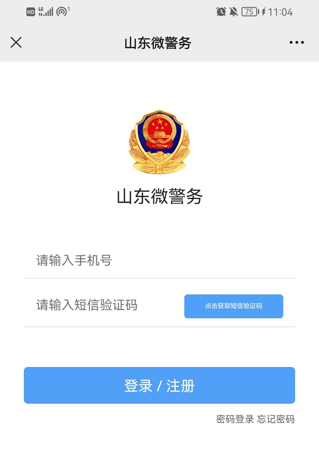 1、关注山东微警务公众号,注册登录