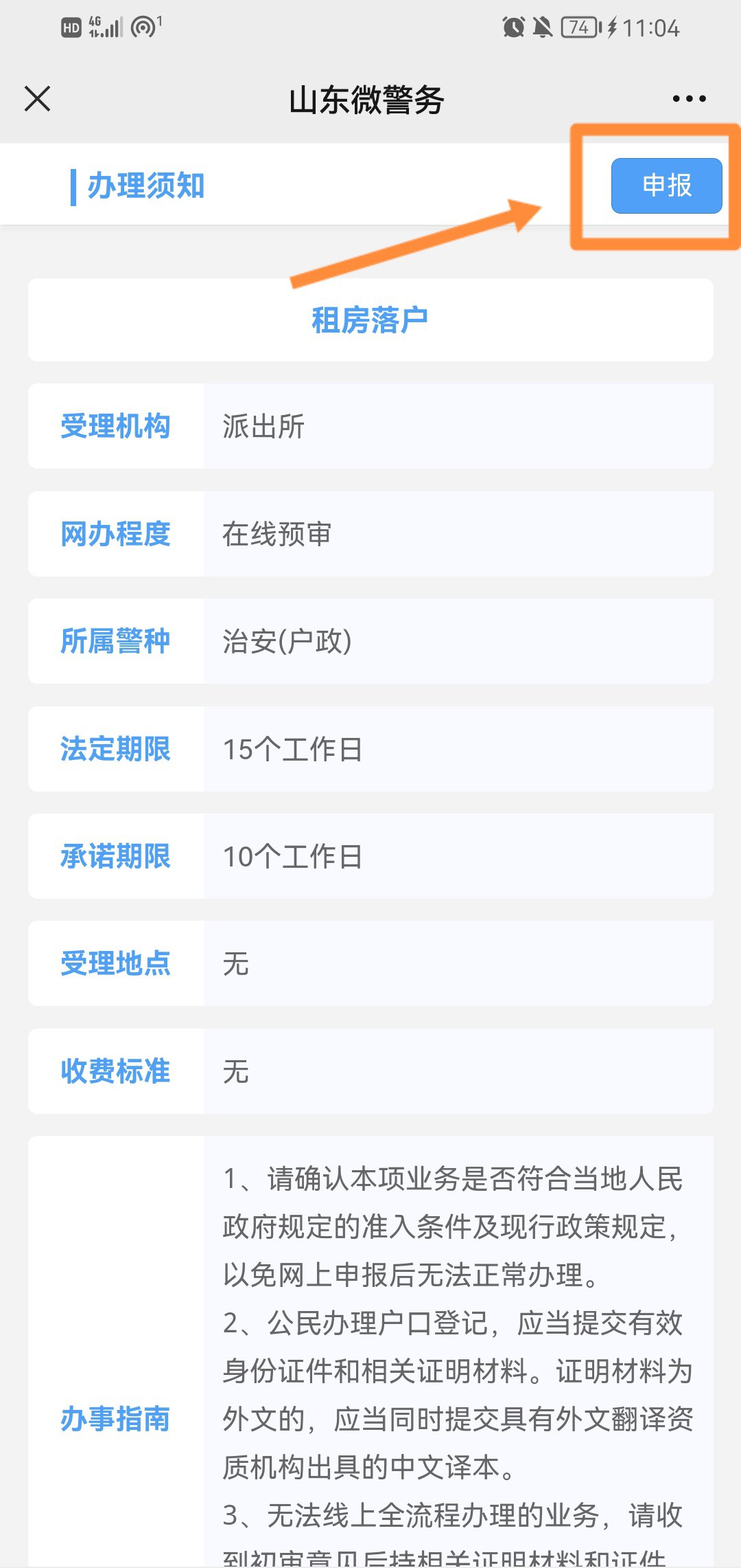 5、查看注意事项,点击【申报】,登录页面,填写相关信息及上传附件