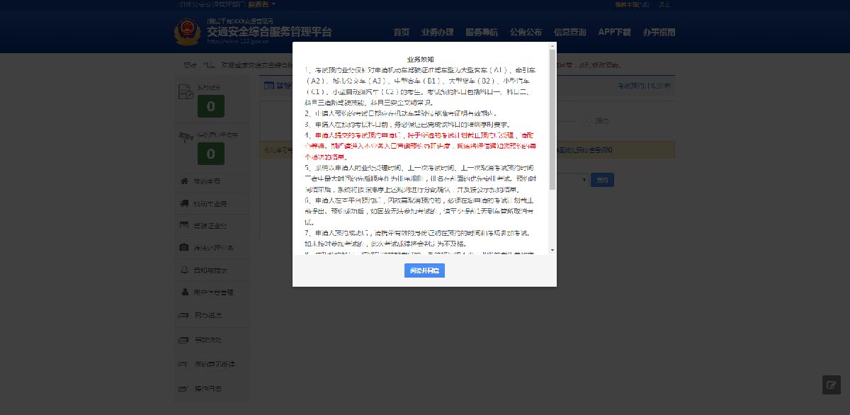 在该步骤,用户需阅读考试预约业务须知,在阅读完毕后,点击【阅读并同意】进入步骤3【选择场次】。