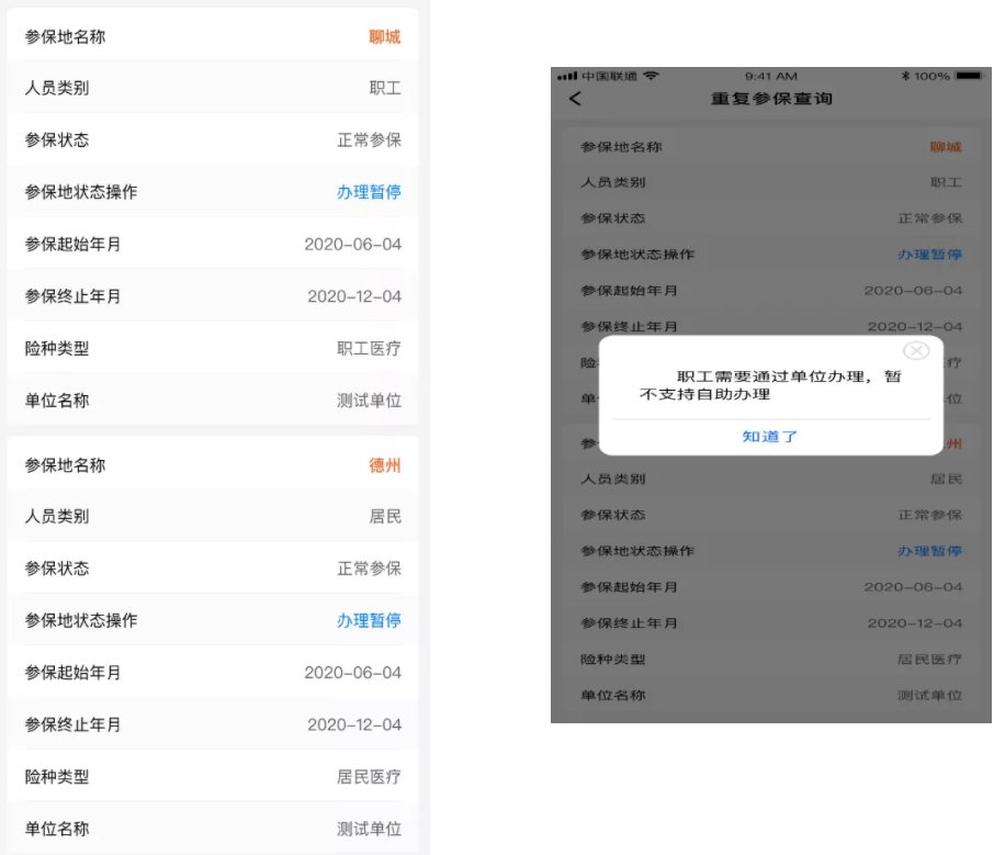 如果您重复参保查询的人员类别是“职工”,职工需要单位通过网上办事大厅办理,小程序暂不支持个人自助办理。