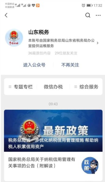 1、扫码进入“山东税务社保费缴纳小程序”,关注并进入公众号。