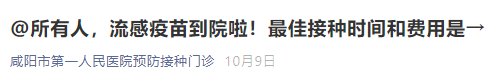 注意:咸阳流感疫苗到苗消息,不一定有疾控大规模、统一公布疫苗到苗情况时间。建议大家如果有流感疫苗接种需求,可以自己咨询居住单位内的社区卫生服务中心。