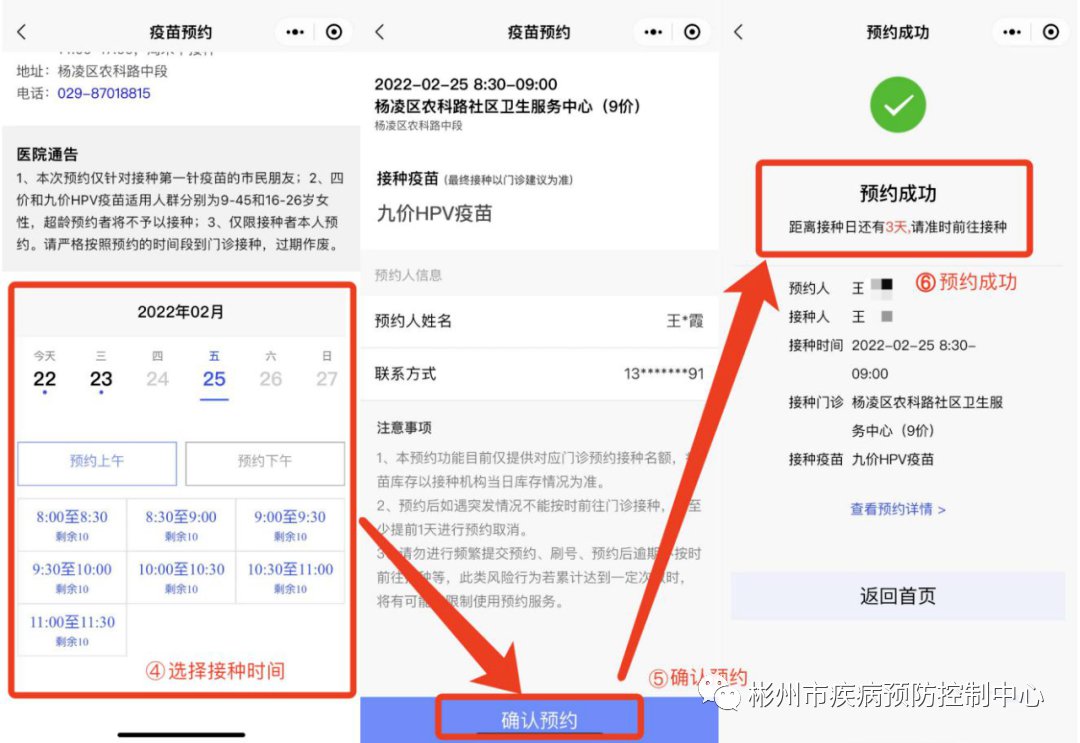 预约流程:点击“HPV疫苗预约”→选择疫苗种类→选择接种点→选择接种时间→确认预约→即可预约成功。