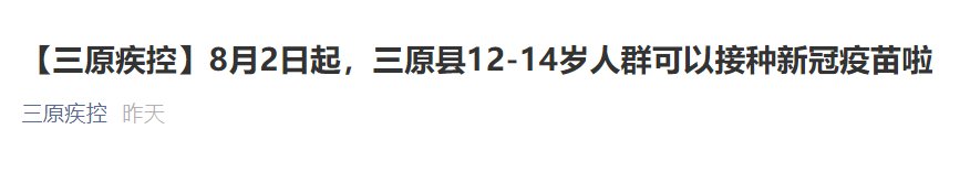 三原县12-14岁人群新冠疫苗接种门诊信息