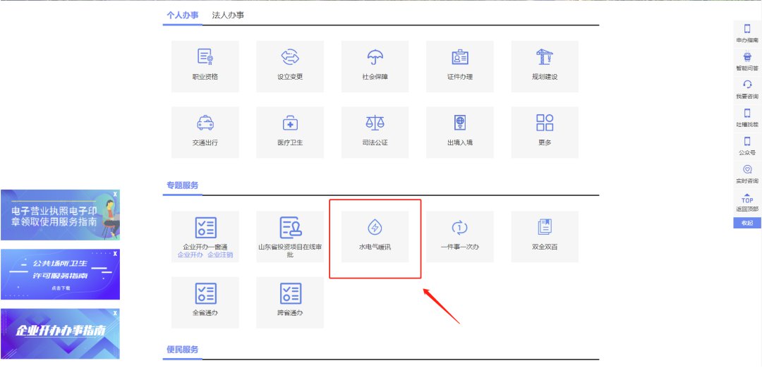 找到“水电气暖讯”统一报装窗口,点击进入。