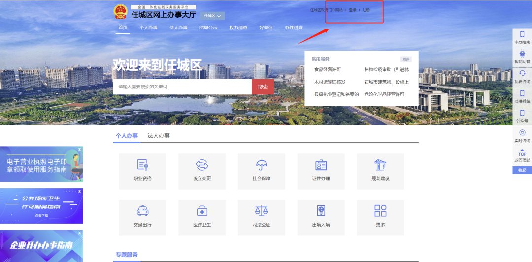登录任城区网上办事大厅 http://zwfw.rencheng.gov.cn:9001/icity/public/index