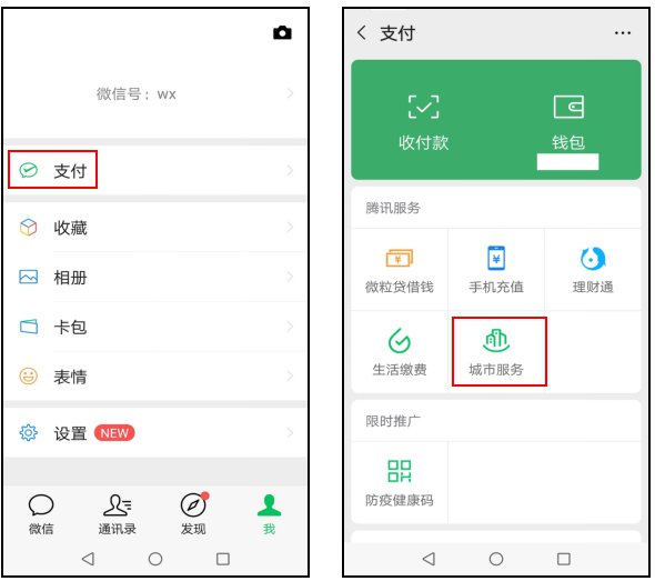 第一步,打开微信,选择“支付”功能,在服务选项中选择“城市服务”;