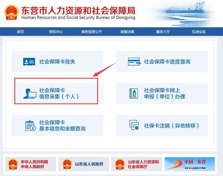 登录网址(http://dylss.dongying.gov.cn/),在界面左上方“网上服务大厅”栏目中点击“社会保障卡业务办理”。登录后,点击“社保卡信息采集”功能申领社保卡。