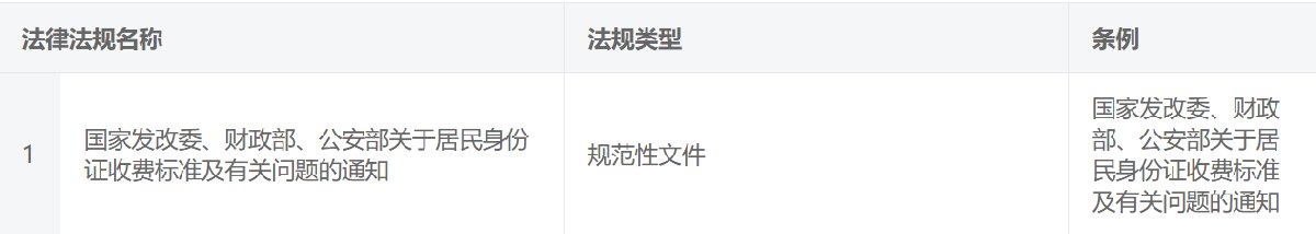 收费依据:《国家发改委、财政部、公安部关于居民身份证收费标准及有关问题的通知》