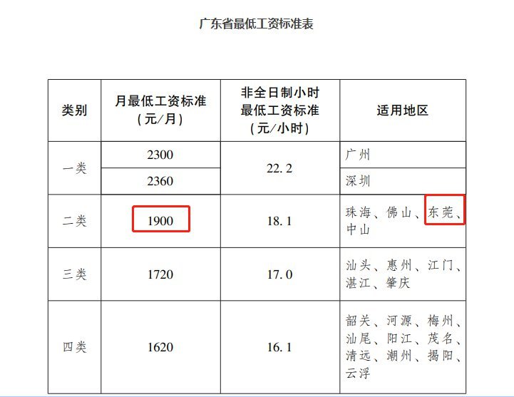 也就是说从2021年12月1日开始,东莞市最低工资标准有调整。东莞市月最低工资标准调整为1900元/月,非全日制小时最低工资标准为18.1/小时。