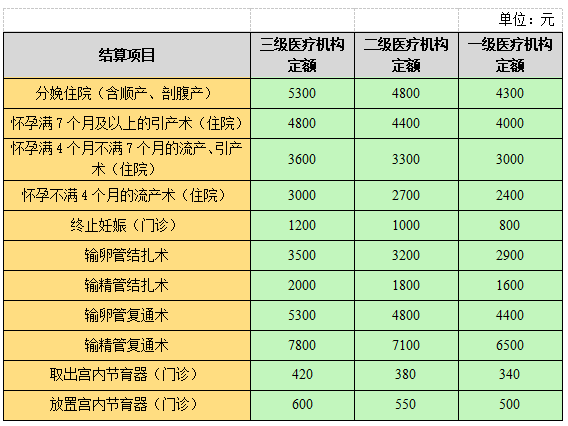 阳江市职工生育保险定额结算标准