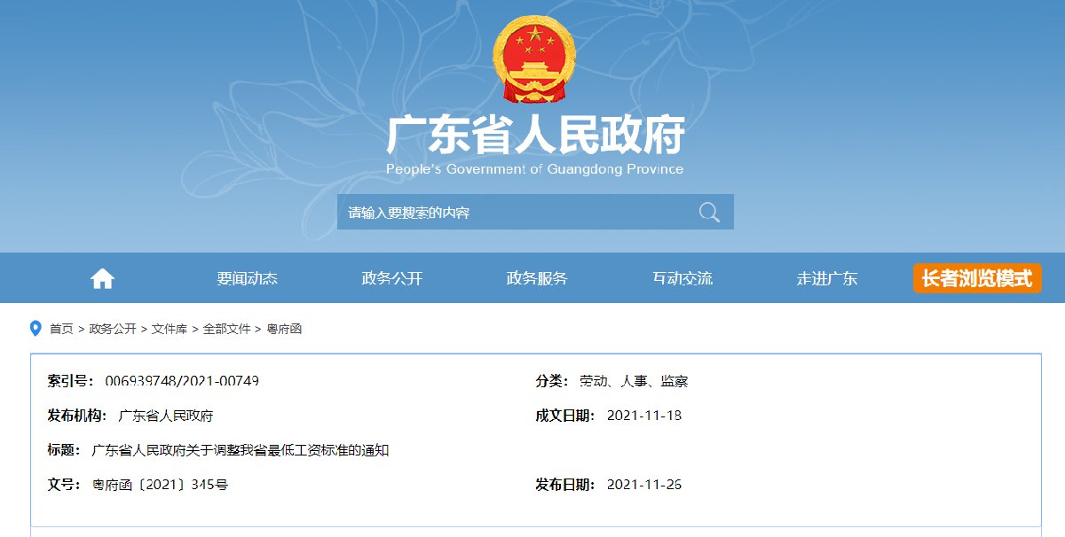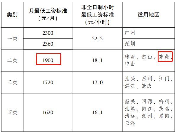 广东省人民政府发布广东省人民政府关于调整我省最低工资标准的通知粤府函〔2021〕345号,东莞市月最低工资标准调整为1900元/月。