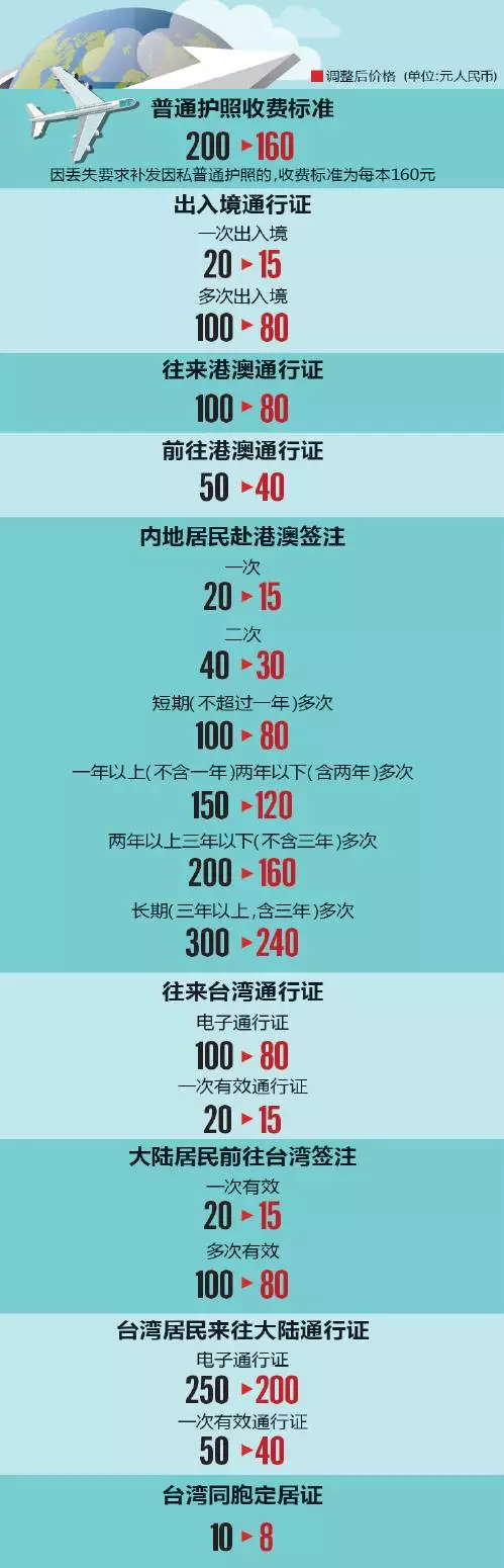台湾通行证:电子:80元 一次有效通行证:15元
