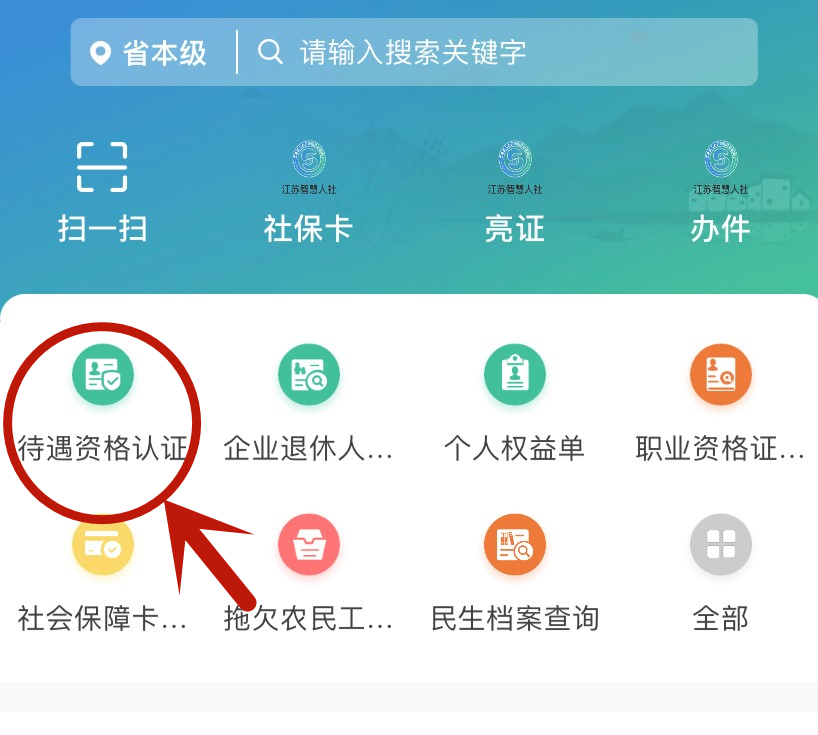 第二步:打开APP,在首页点击左上角“待遇资格认证”。